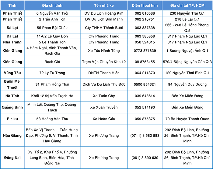 • Danh sách xe khách khách hàng thường sử dụng: